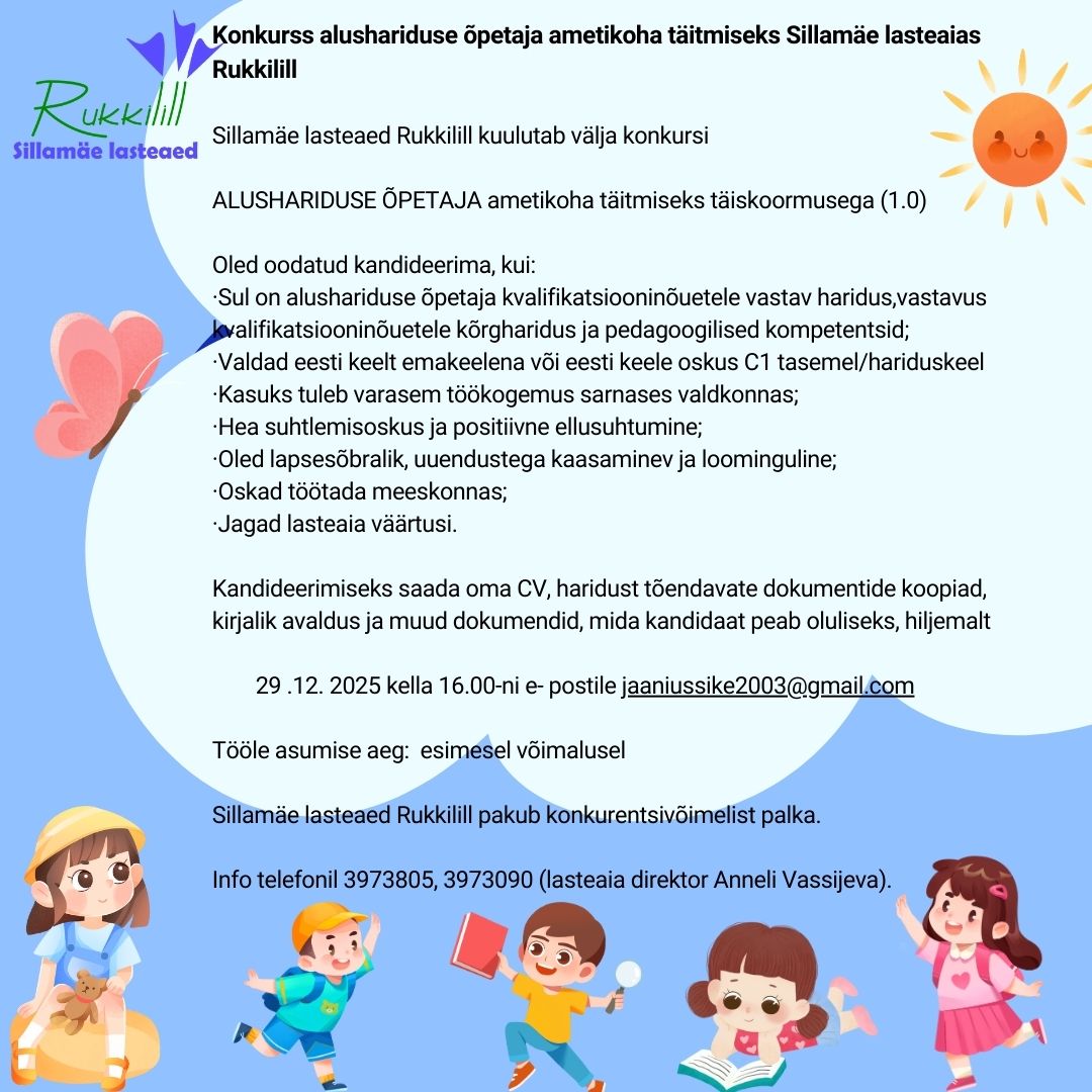 Sillamäe lasteaed Rukkilill kuulutab välja konkursi - arhiiv